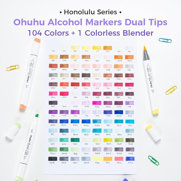Набор двусторонних спиртовых маркеров OHUHU Honolulu на 104+1 цвет — это стратегическое дополнение для самых требовательных художников. Он создан специально для владельцев полной коллекции на 216 цветов, чтобы вывести вашу палитру на абсолютно новый уровень — фантастические 320 уникальных оттенков.